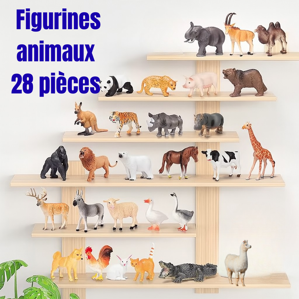 • 🐾 28 figurines d’animaux variées : sauvages, domestiques et de ferme